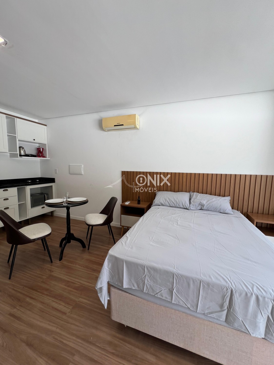 O ambiente é mobiliado e conta com uma distribuição inteligente dos espaços, ideal para quem procura praticidade e conforto. O studio oferece também box de garagem.