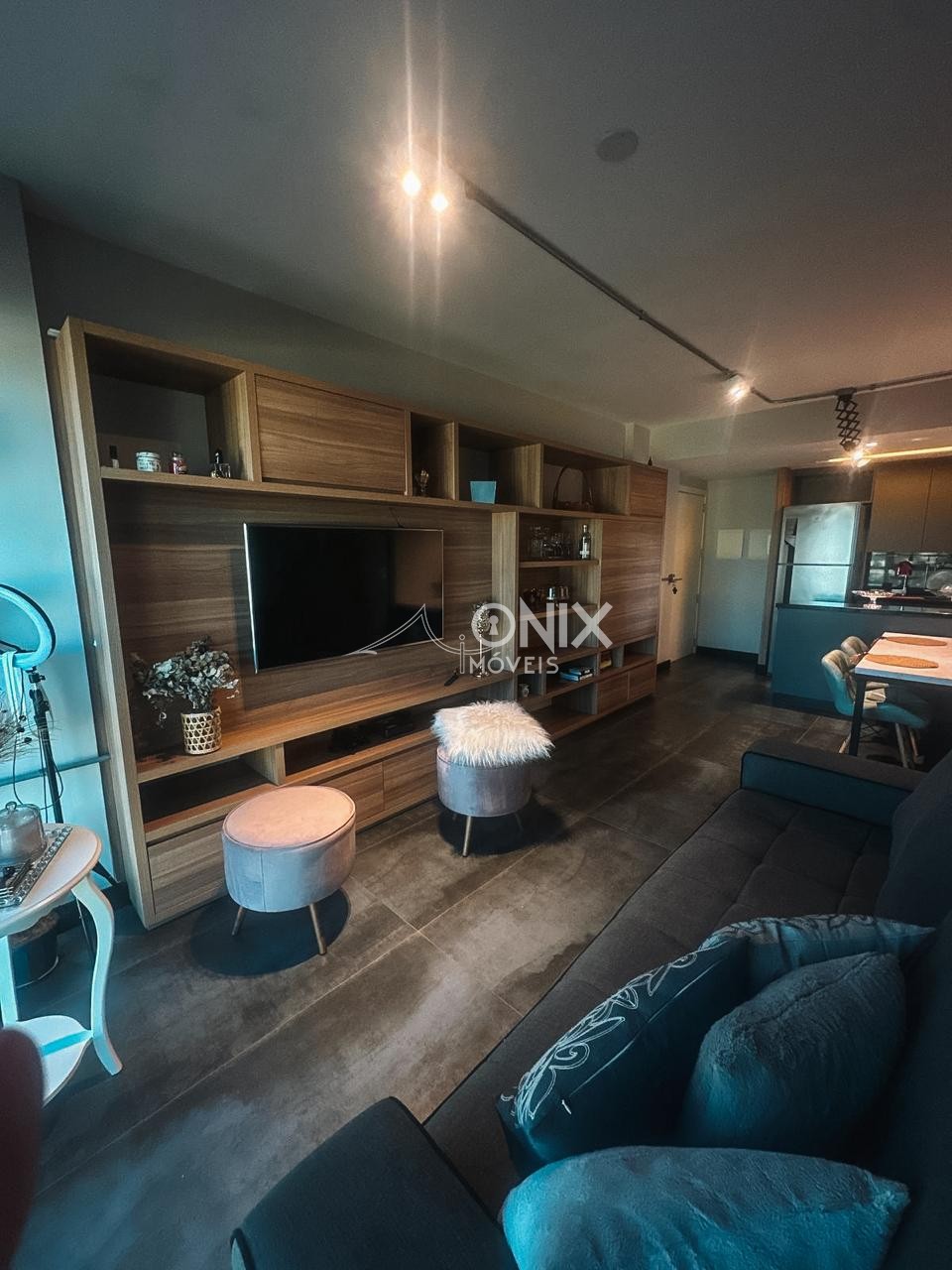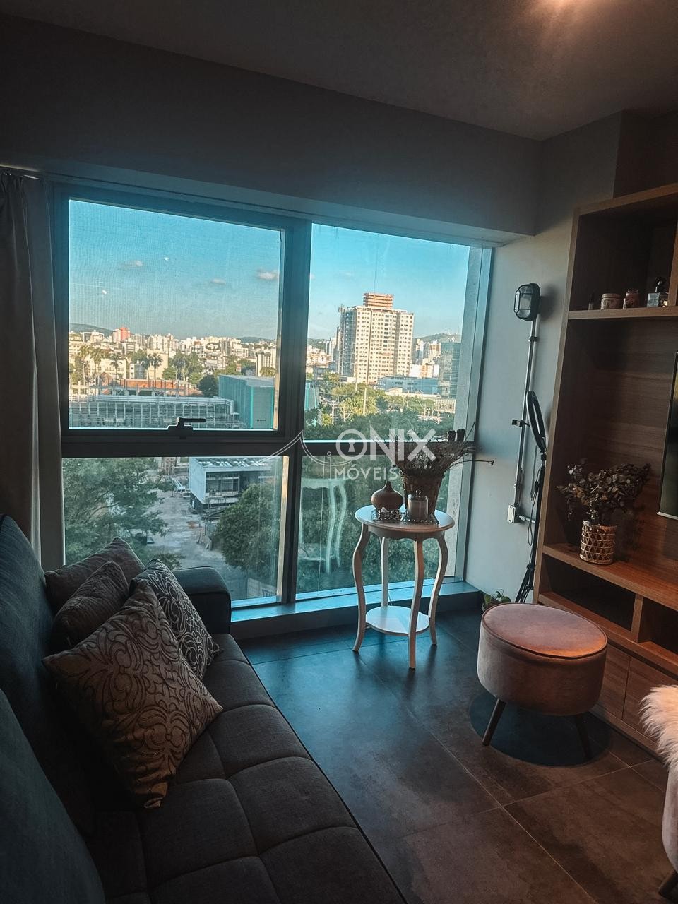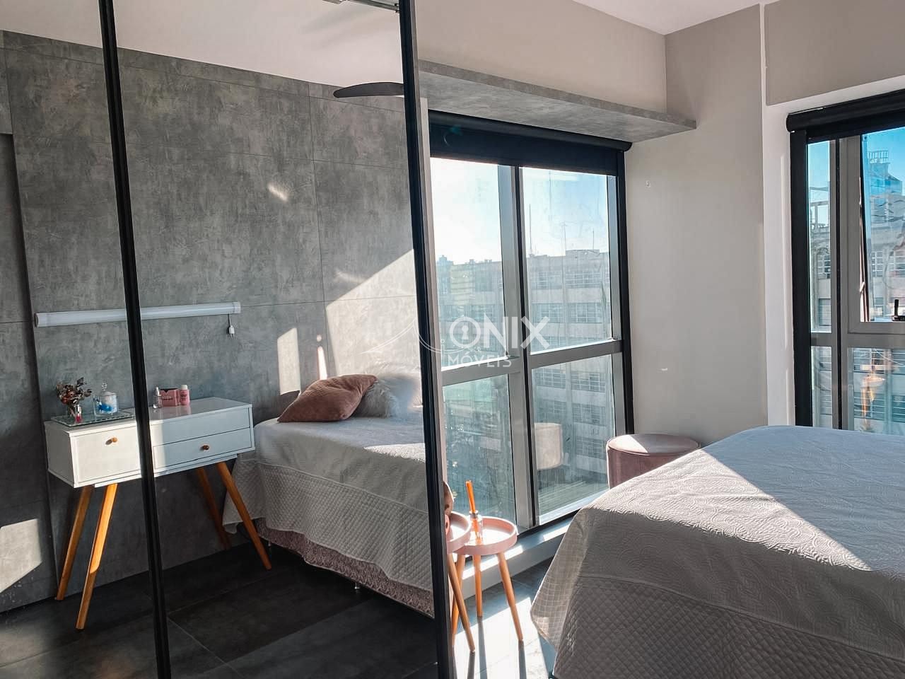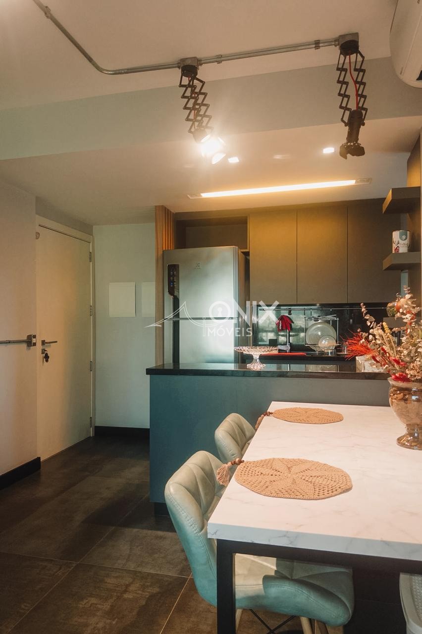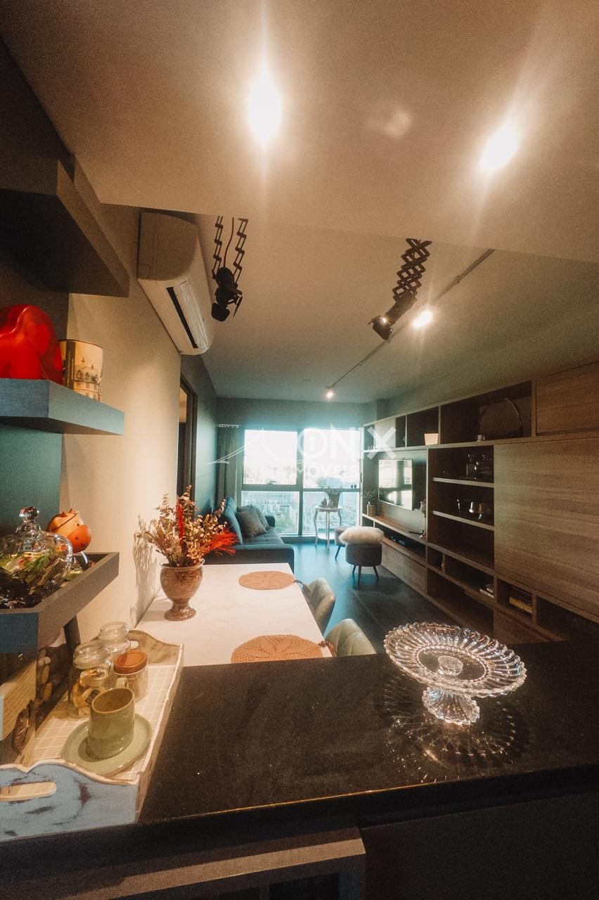 O imóvel conta com 1 dormitório, sala e cozinha integradas, além de móveis planejados, trazendo mais funcionalidade e charme aos ambientes.